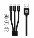 Swissten Textile 3-in-1 Data Cable - 72501103 - 1.2m - Black