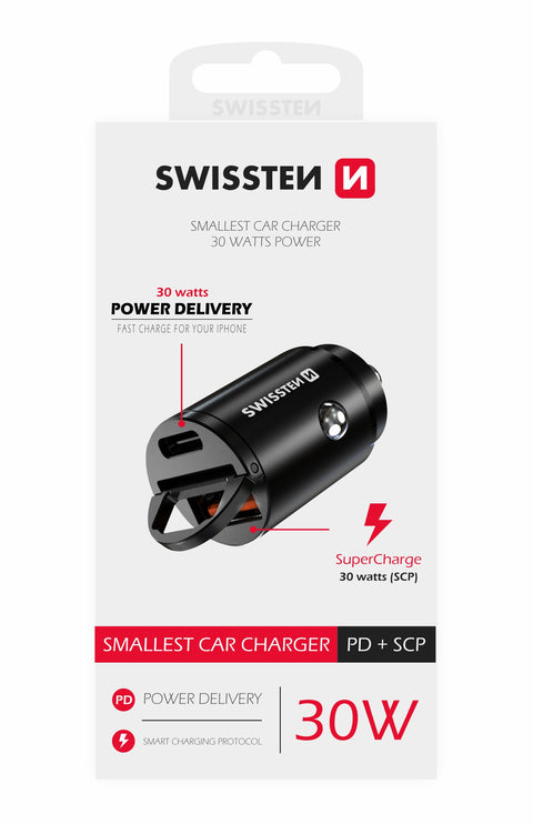 Swissten 2.4A Power Delivery (36W) Car Charger - 20111760 - With USB-A & USB-C Port - Black
